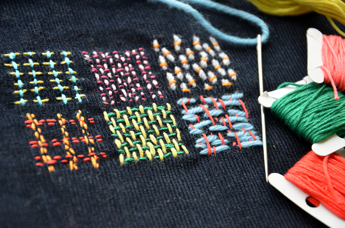 Here's another embroidery sample from this fabulous course. I just love the denim and could quite happily use it for all my samples. But I realise I need to try some different fabrics to help get an understanding of how various fabrics impact the stitches.
